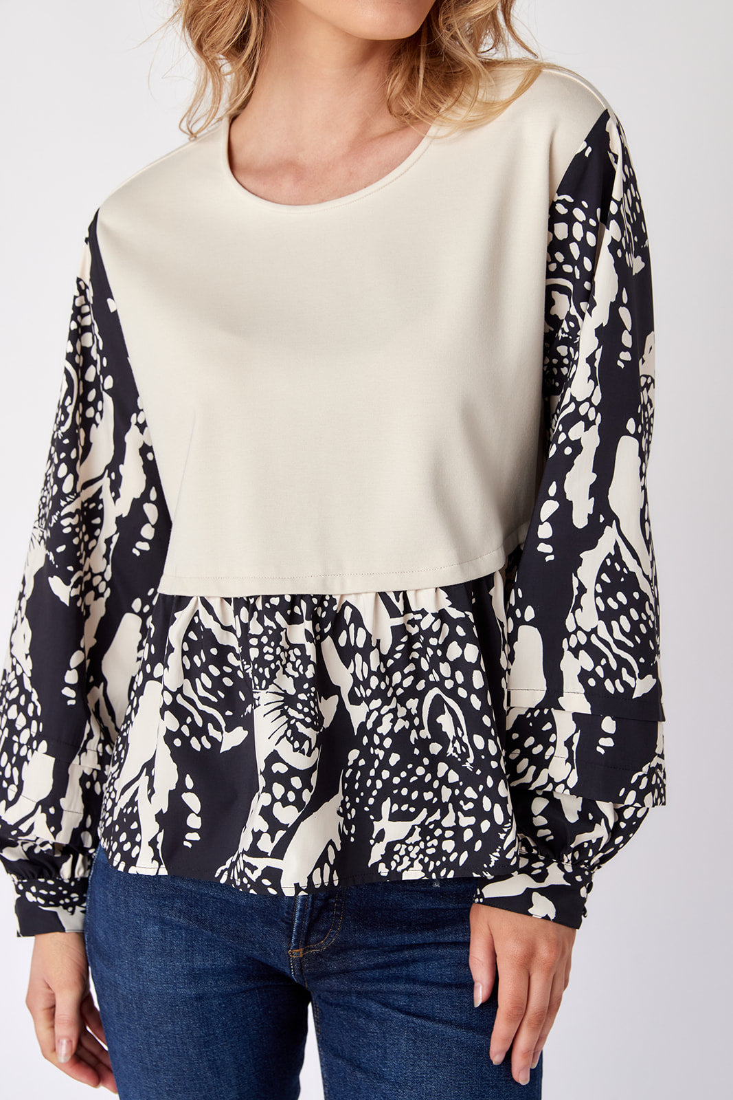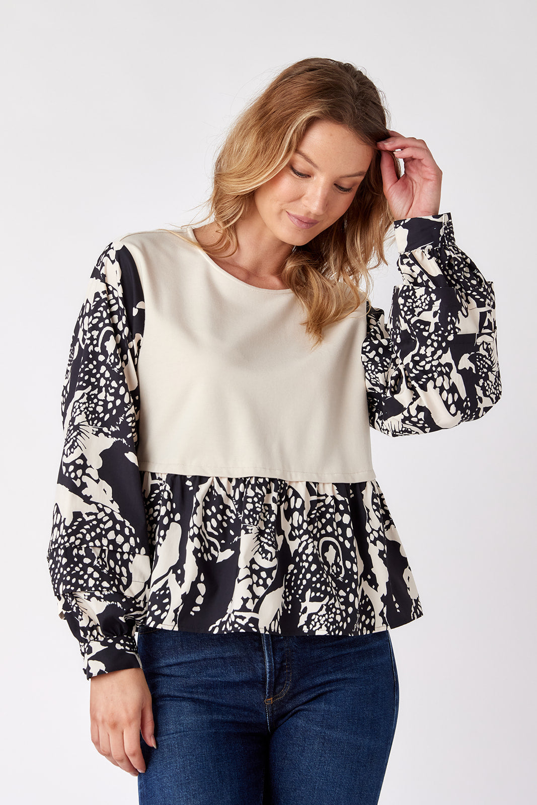 The Asher Top is a must-have for your fall wardrobe! We’re loving the fabric mixing along with balloon sleeves and a gathered flounce that adds just the right amount of flair.