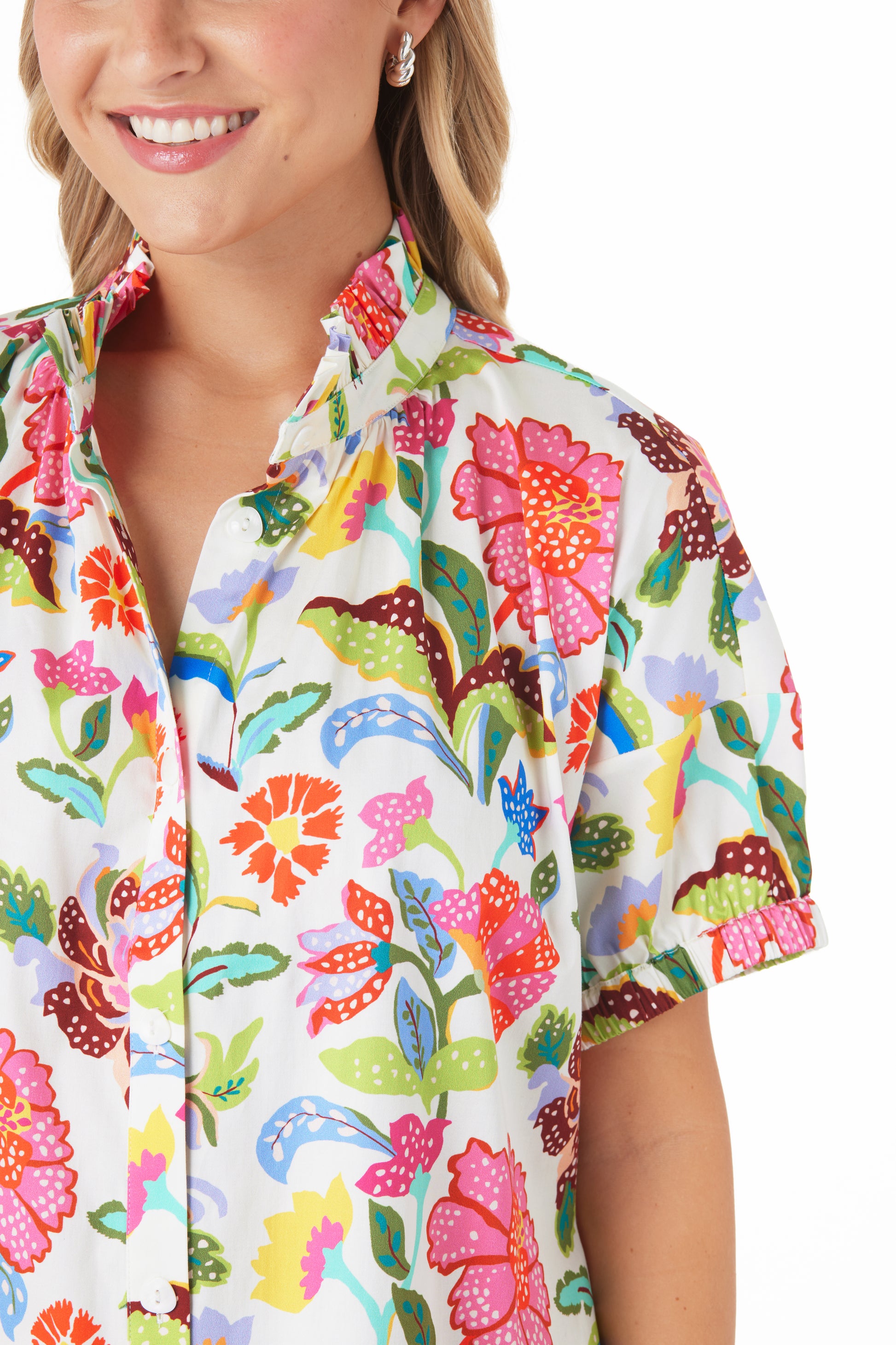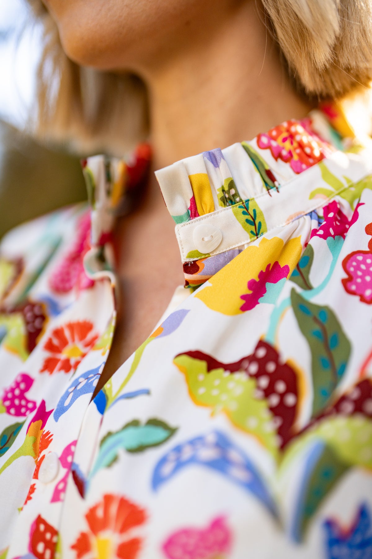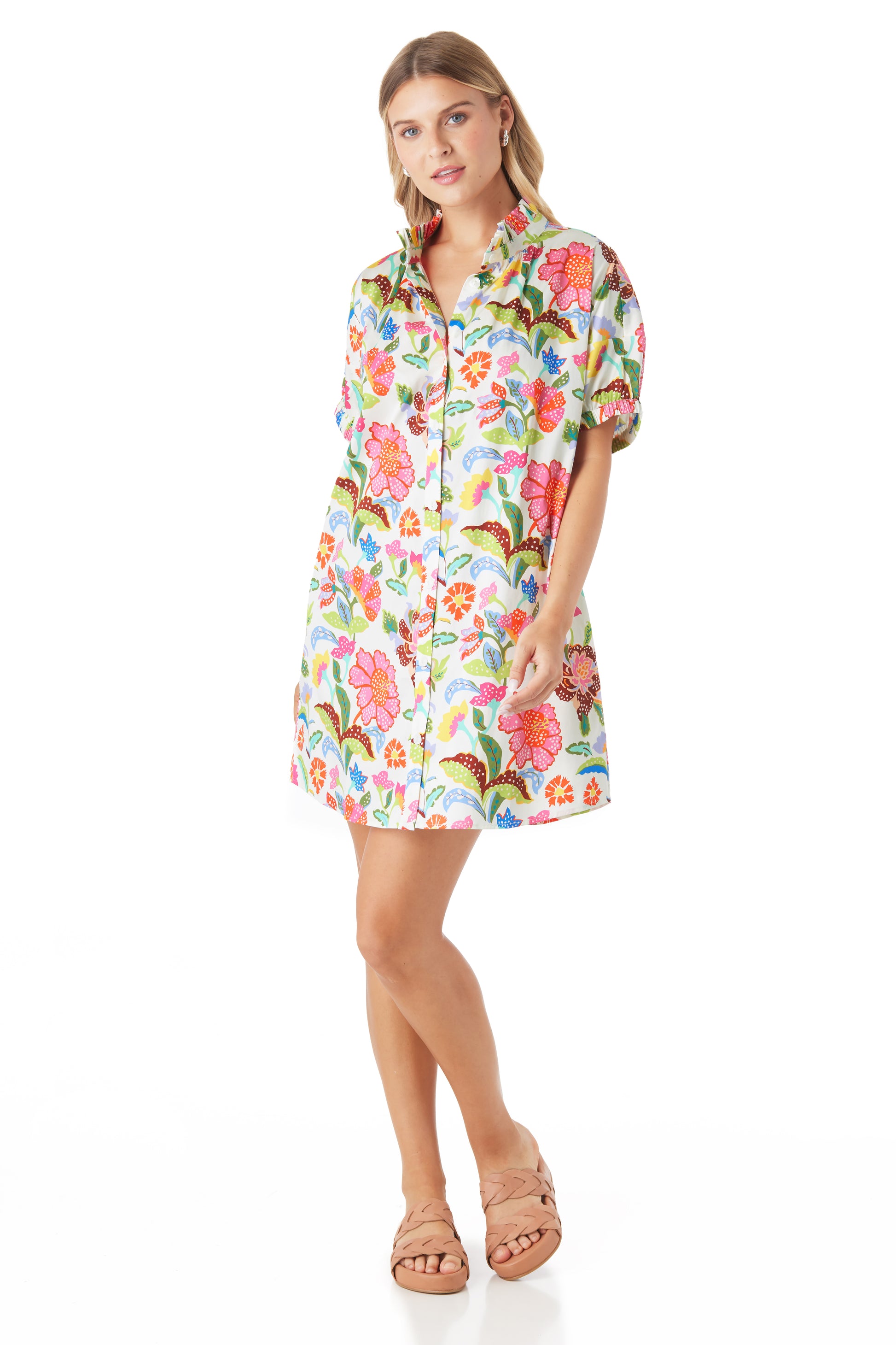 The Betts Dress is a breath of fresh air for your spring wardrobe! Embrace the season with this above-the-knee shirtdress that effortlessly combines comfort and style. She has an oversized fit and features puff sleeves with an elastic cuff, a ruffle trim collar, and pockets (duh!).