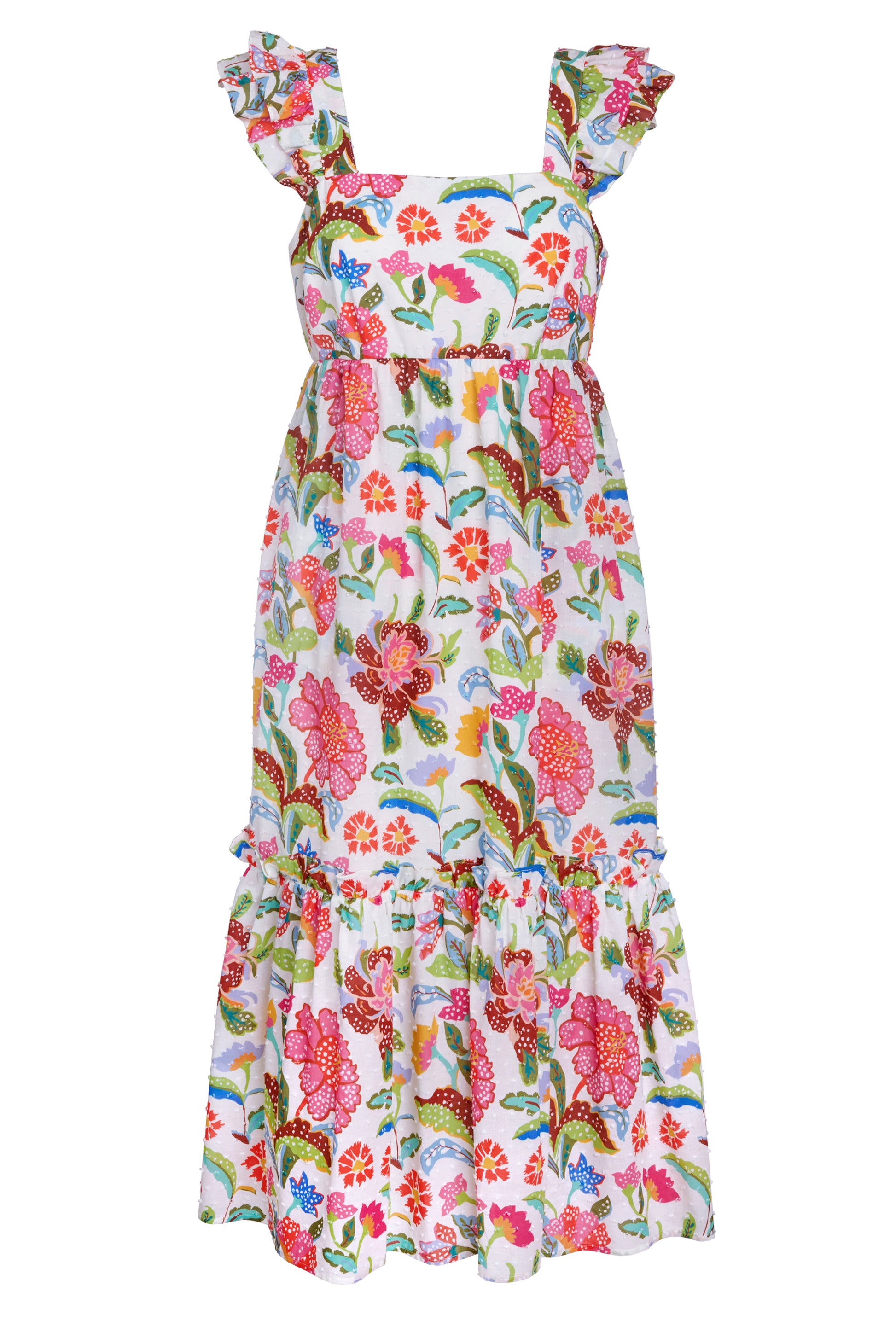 Elevate your springtime look with the Bryce Dress. We love the chic details including straps adorned with a double-ruffle at the shoulder and a straight neckline featuring smocking at the back bodice for a comfortable and secure fit. The tiered, gathered skirt features charming ruffle details, complemented by a side seam zip closure and convenient pockets.