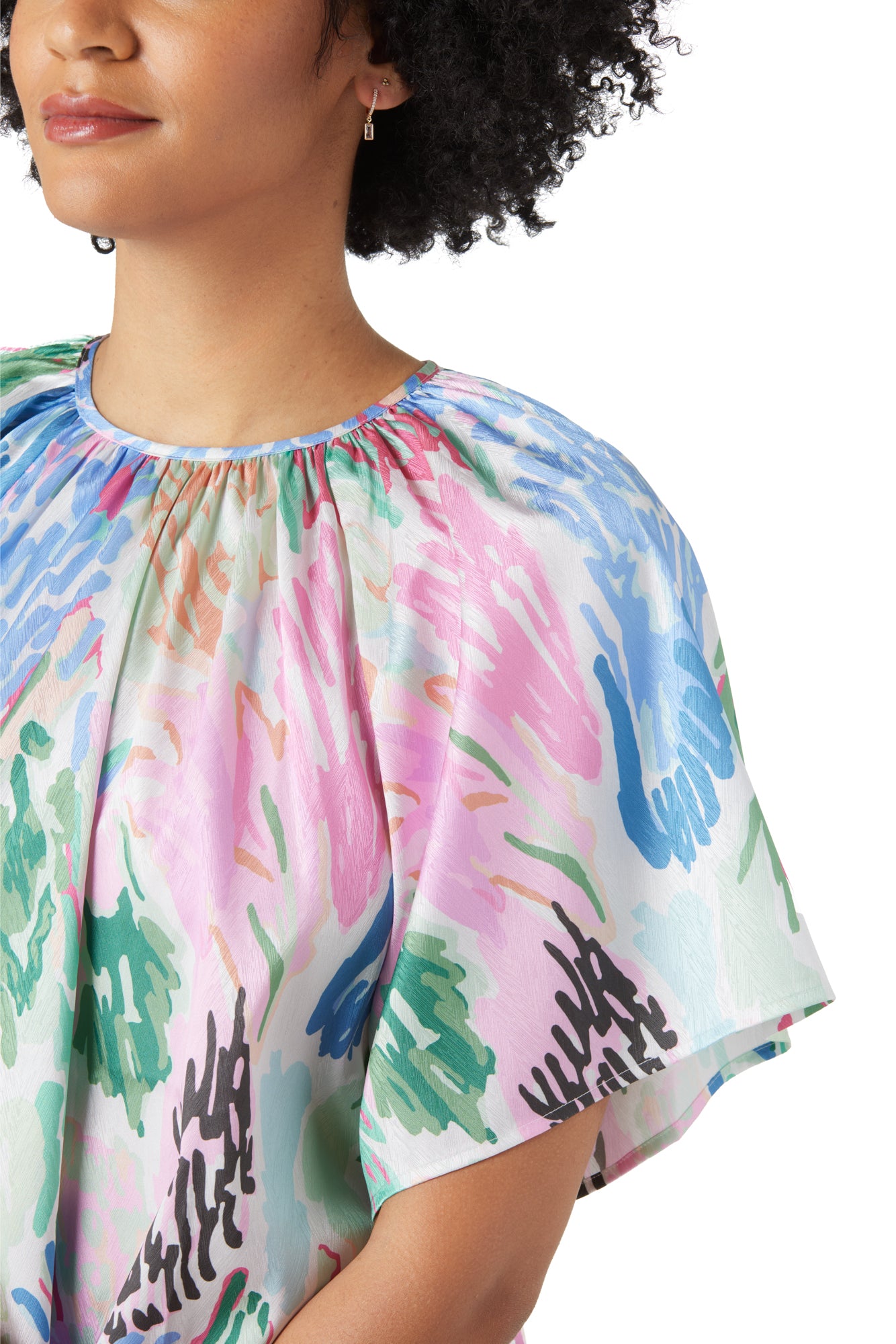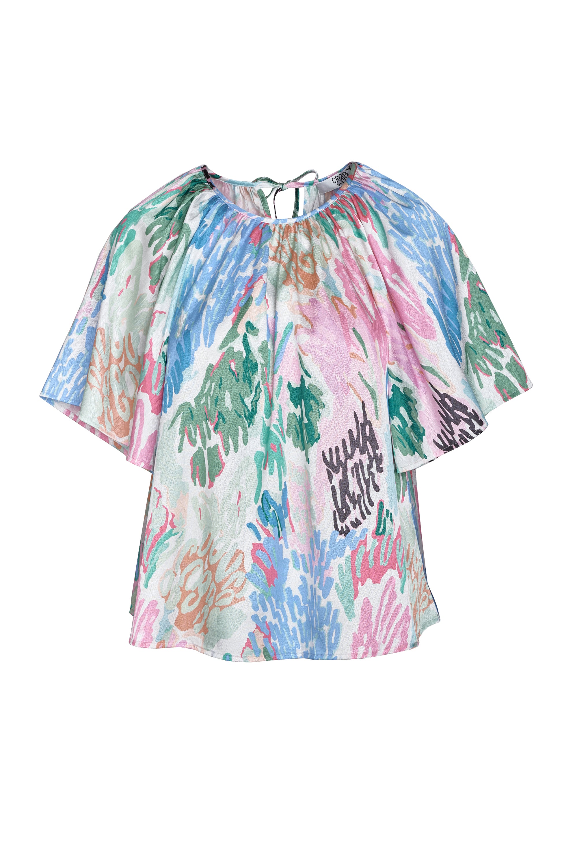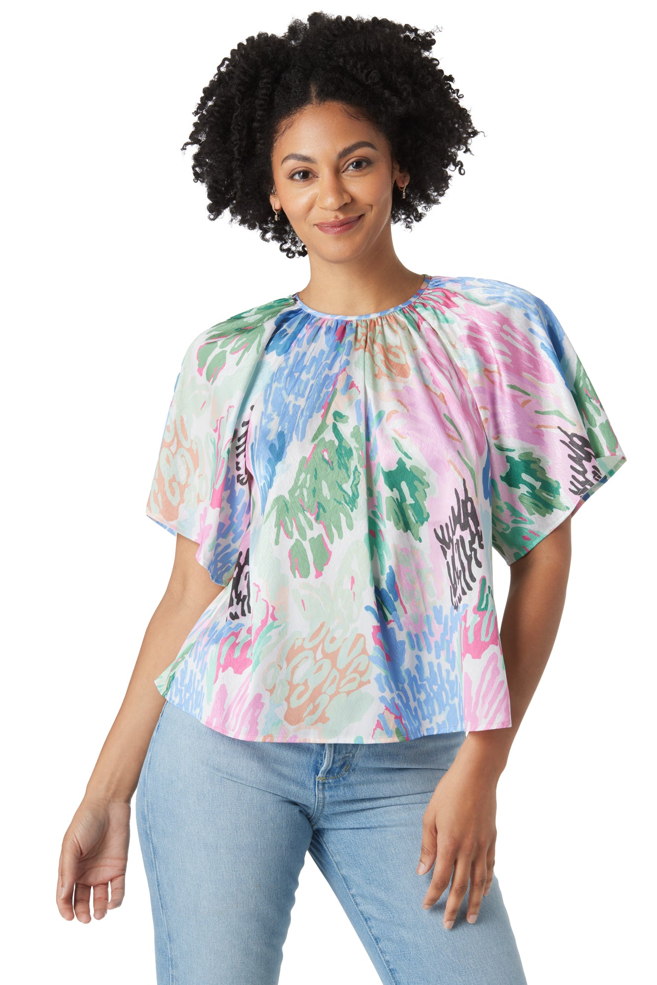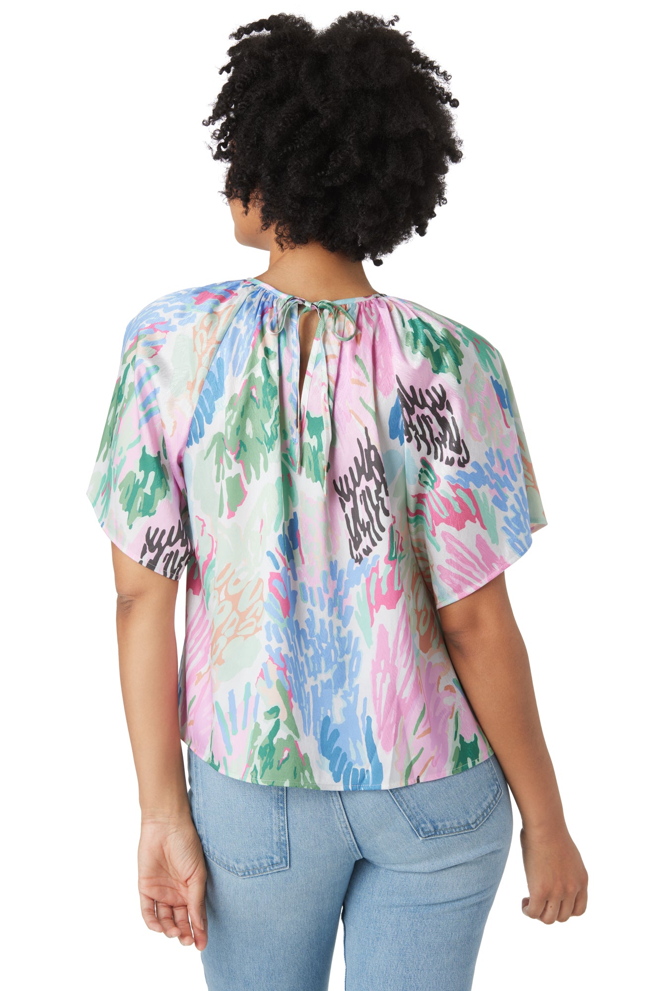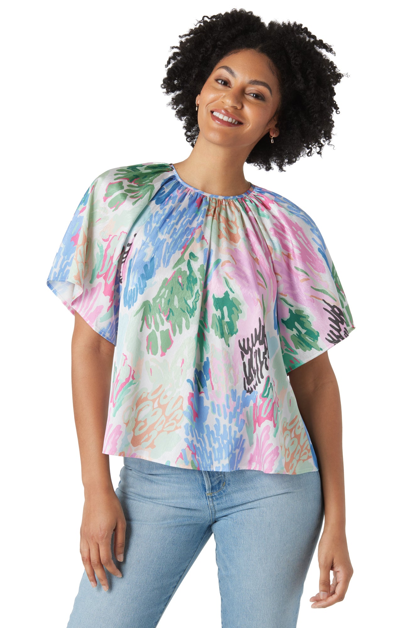 The Brynn Top features a flutter sleeve and a tie back closure. She has a gathered neckline and a swingy A-line fit- a classic silhouette.