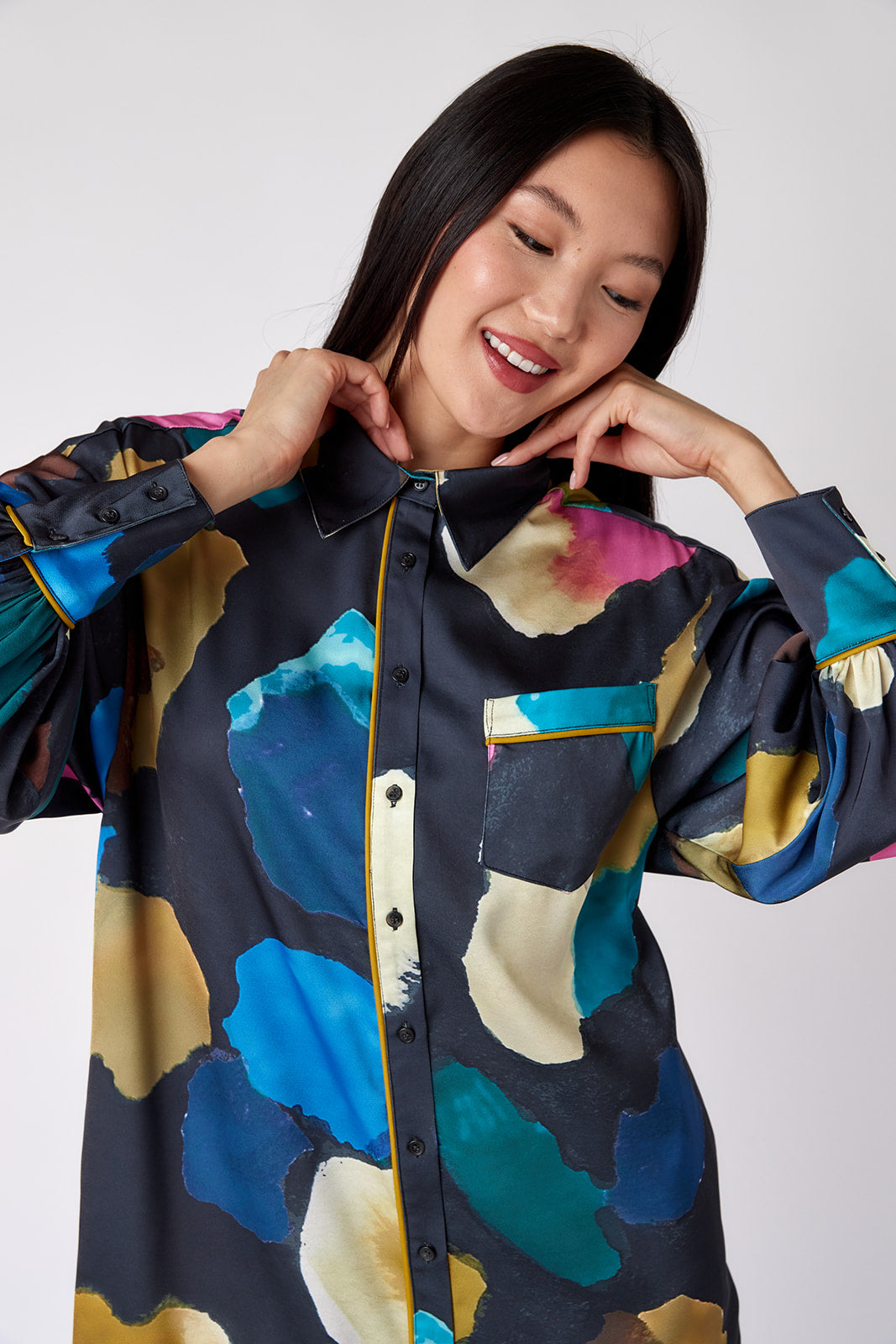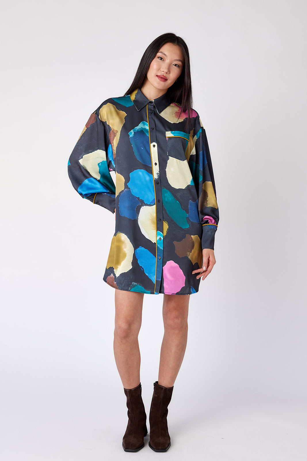 Meet Crawford, your new go-to shirtdress. This above-the-knee dress boasts a relaxed fit, balloon sleeves with button cuffs, a shirttail hem, and, of course, pockets! It’s a versatile staple you’ll reach for again and again.
