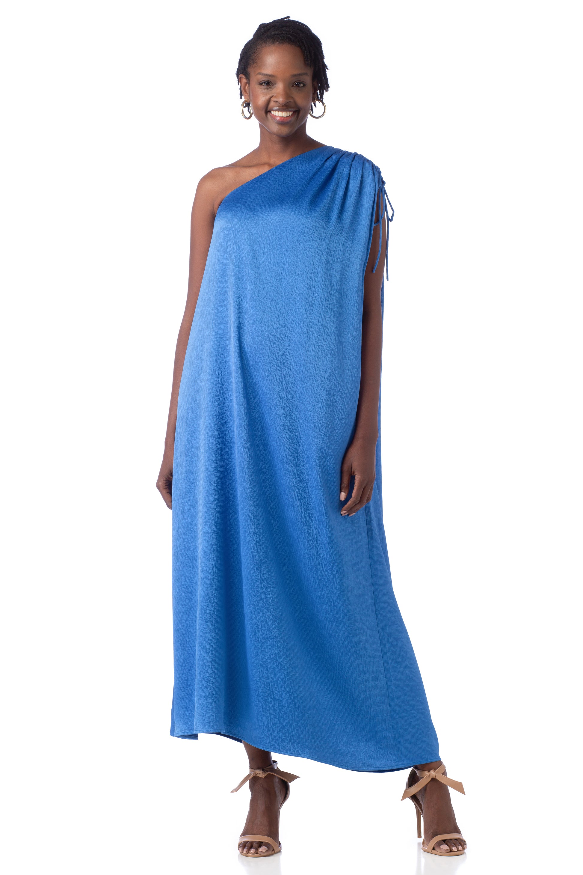 An updated spin on our fan favorite Alexa Dress, this new one-shoulder silhouette is oh so sophisticated and chic. We love her drawstring shoulder detail. She’s meant to have an oversized look, but feel free to size down if you would like a slimmer fit.