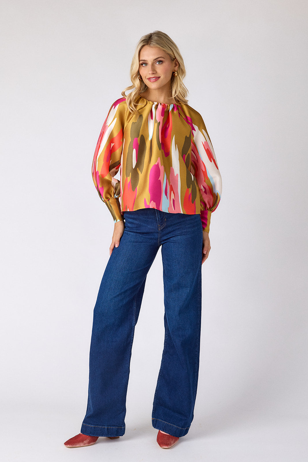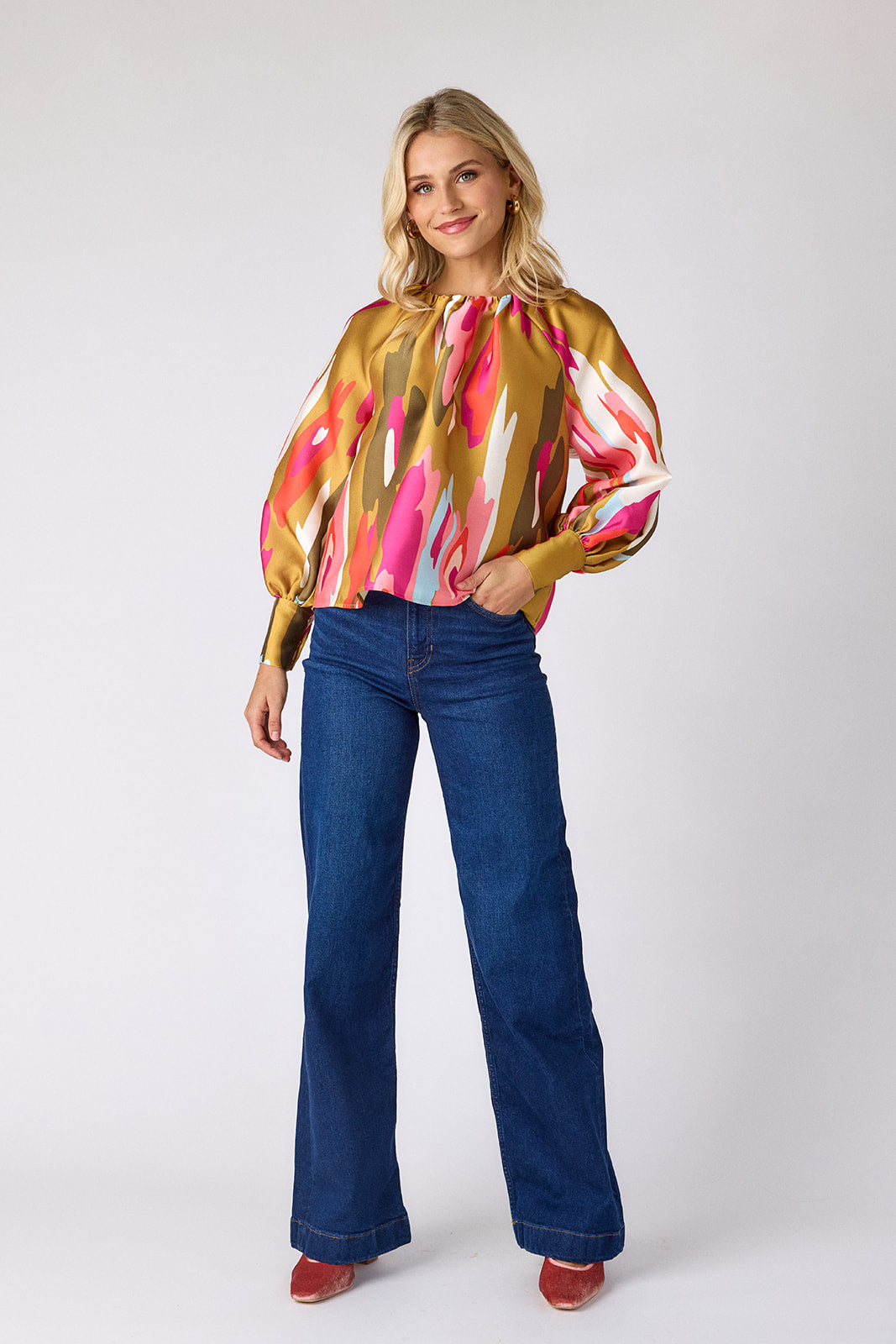 Named after our Elizabeth Street office, the Elizabeth Blouse is a fresh update to our best-selling Claudia Blouse. This effortlessly flowy style features a shirred neckline, full-length balloon sleeves, and gold snap details at the cuffs for a touch of shine.