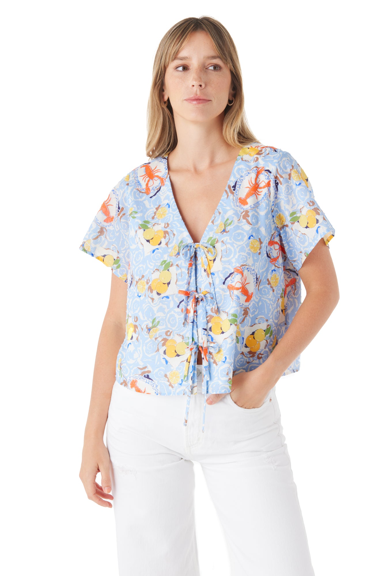 Meet Fallon, your go-to top for the warmer months ahead. She has a relaxed fit and charming details including front self-ties, a flattering V-neckline, and short bell sleeves.