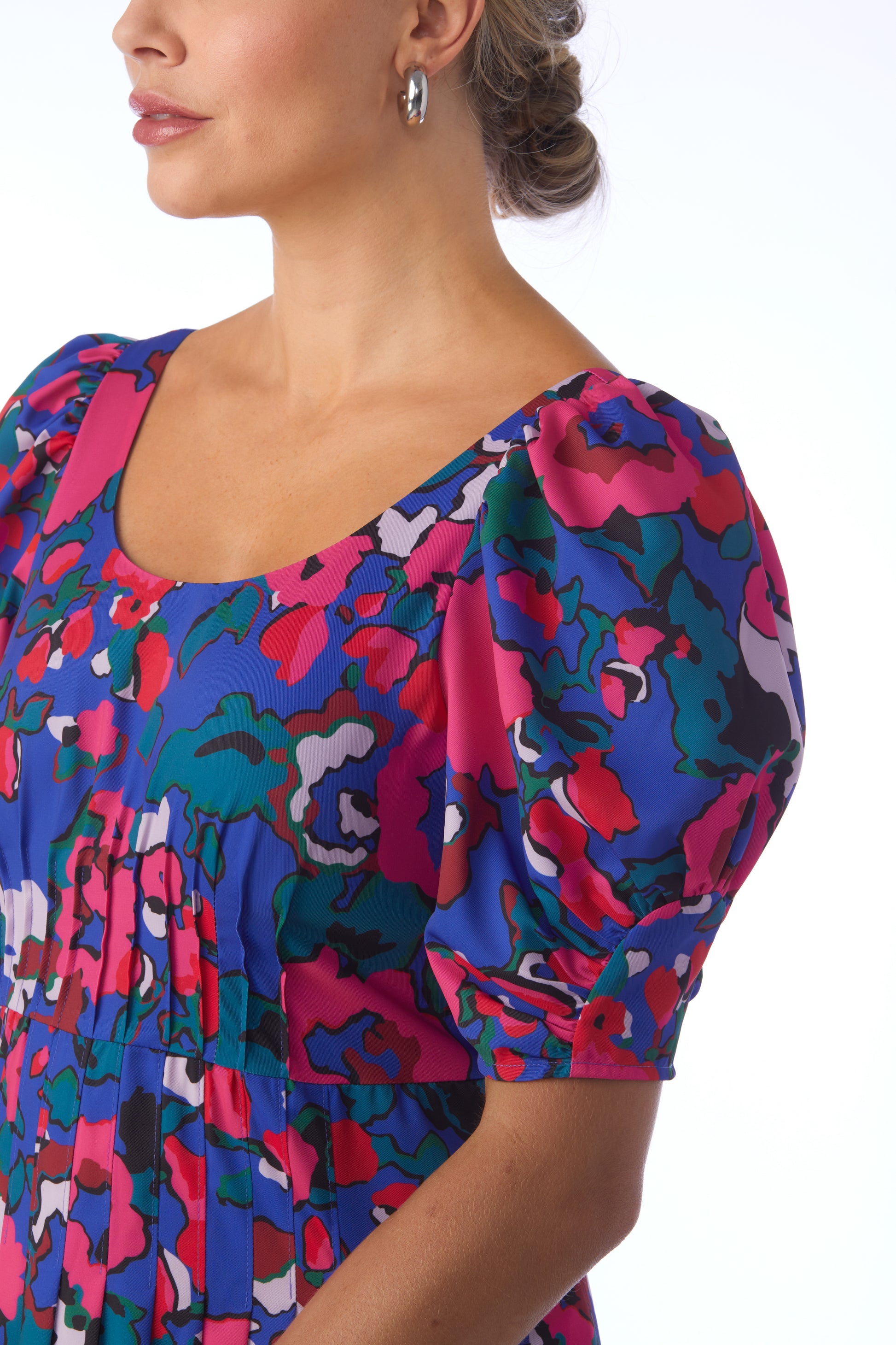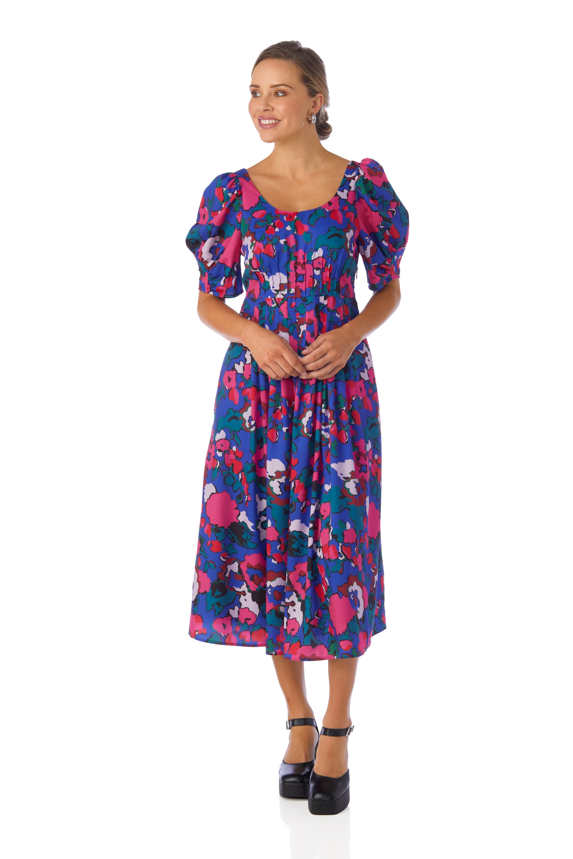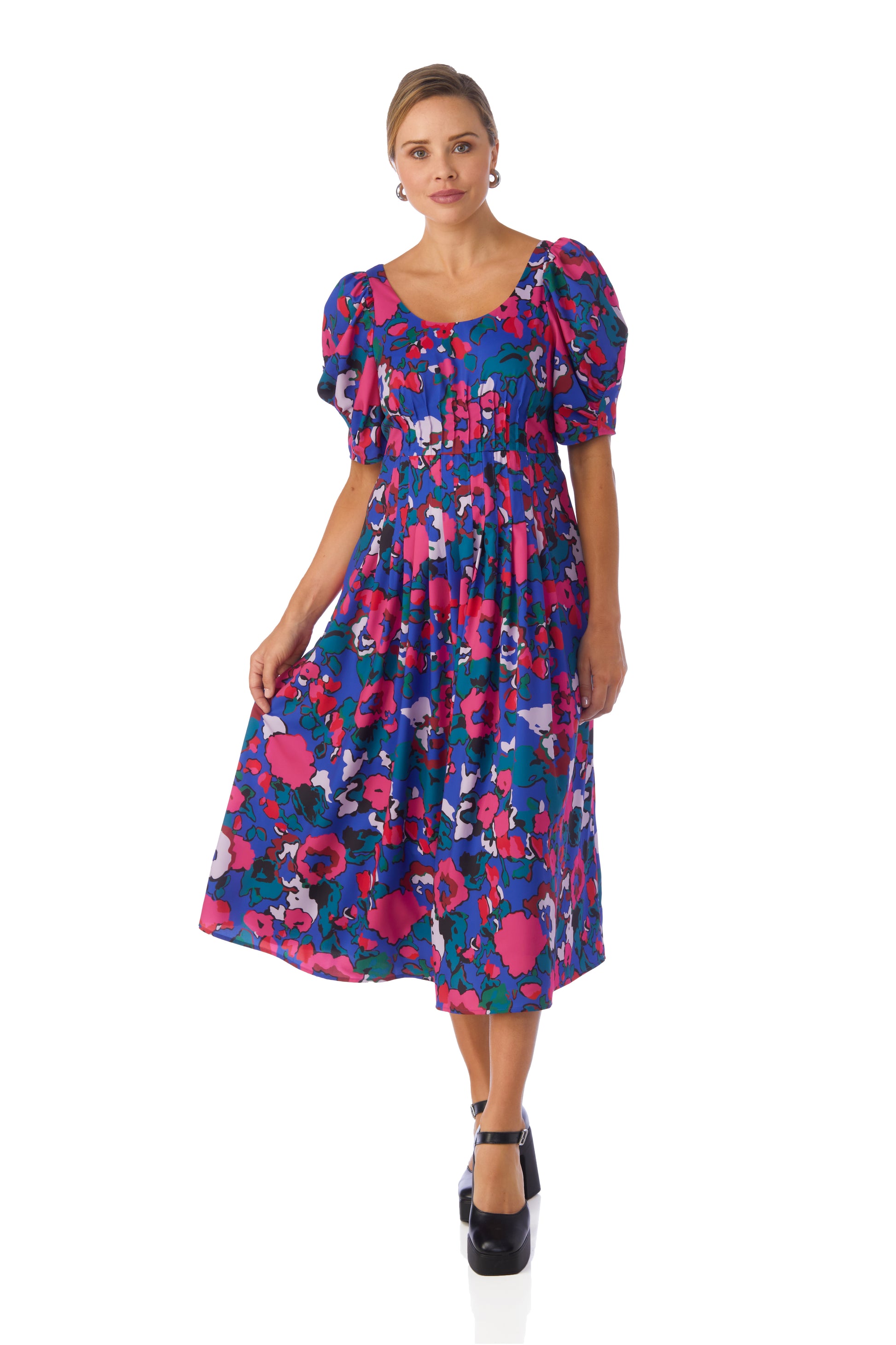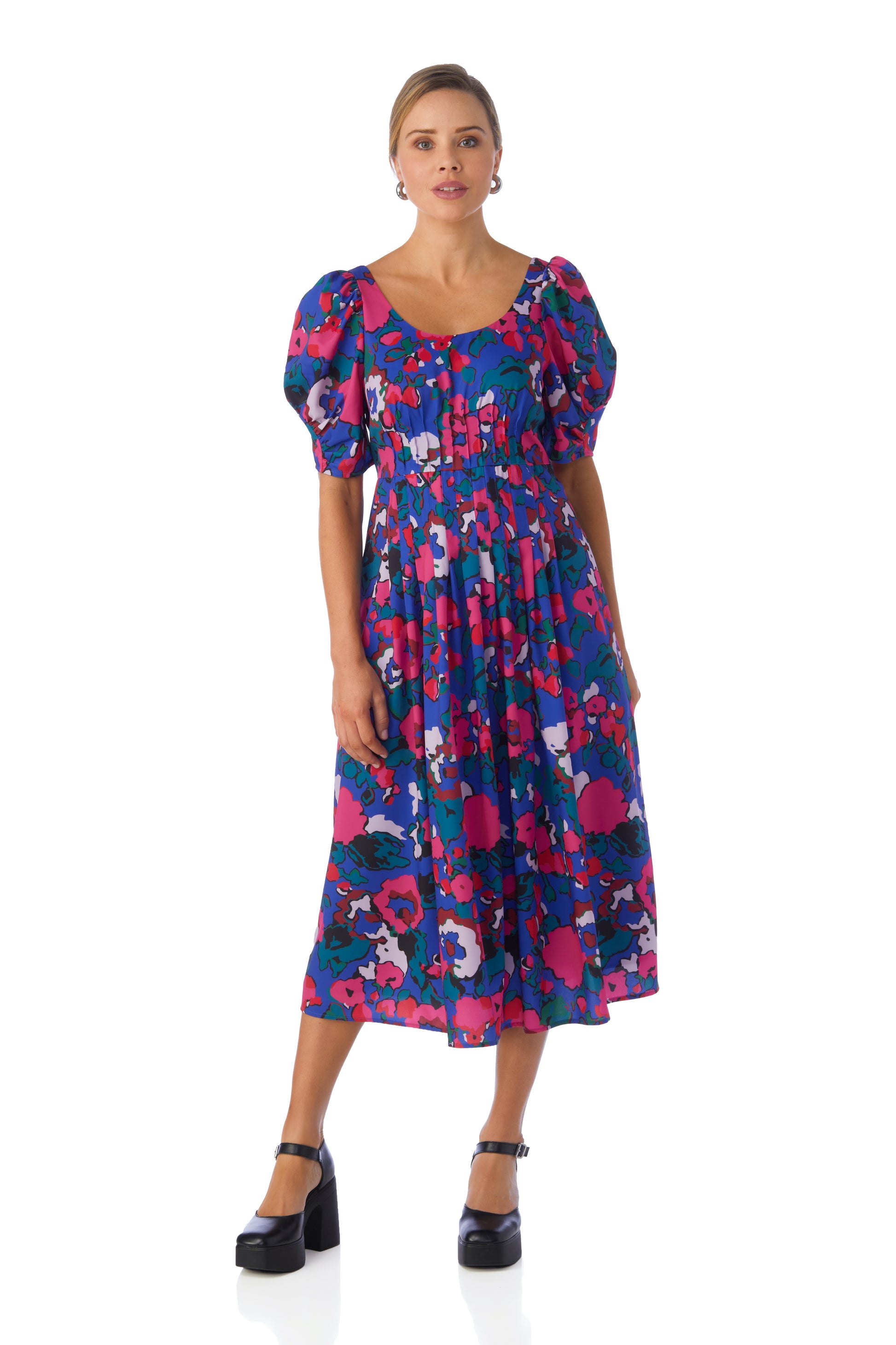 Featuring a scooped neckline, flattering pleat detail at the bodice and waistline, and balloon sleeves, our new Flagger Dress is a total vibe.