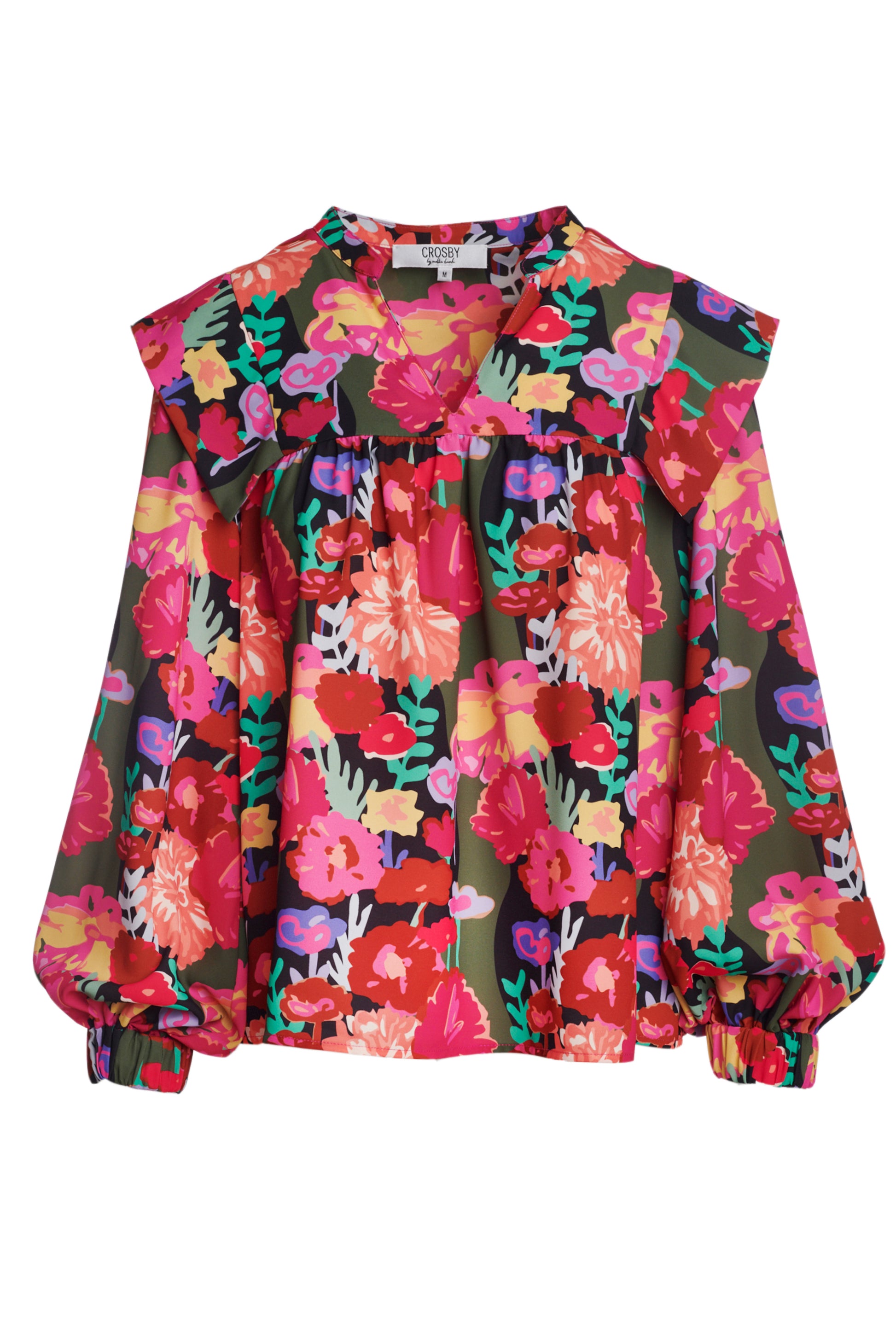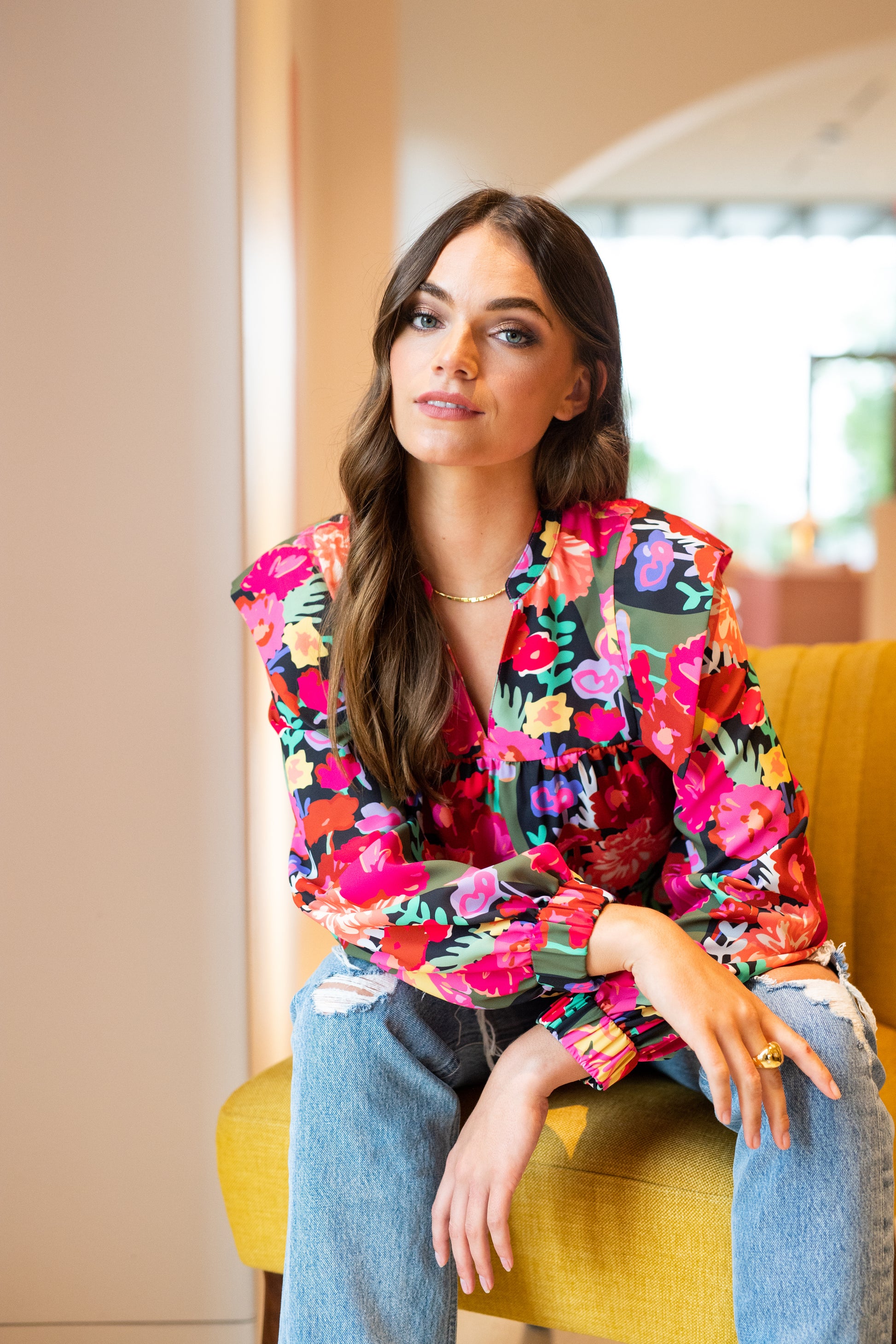 A classic blouse with trendy details. With these bold shoulders, she’s stylish and she knows it!