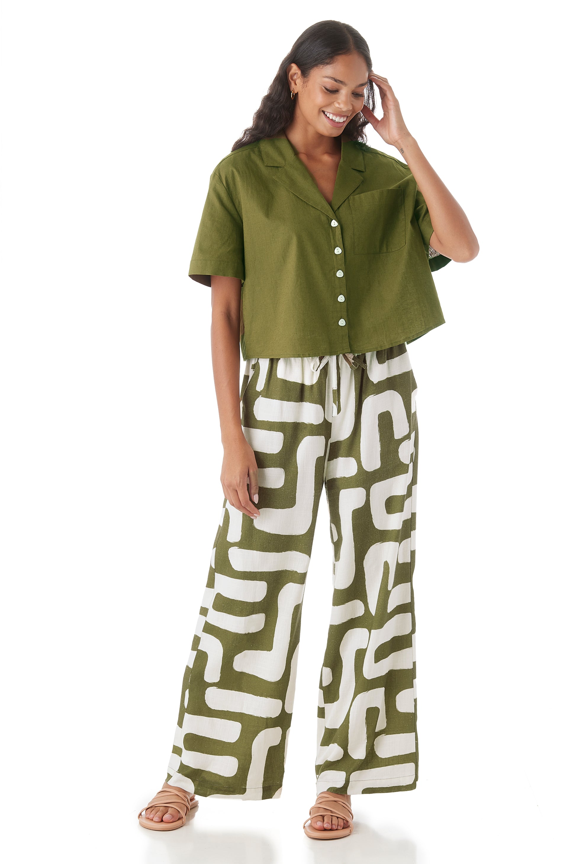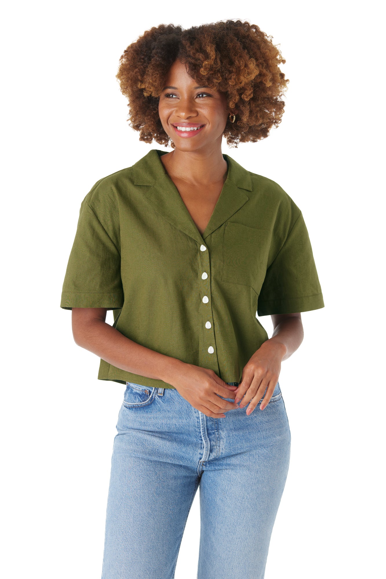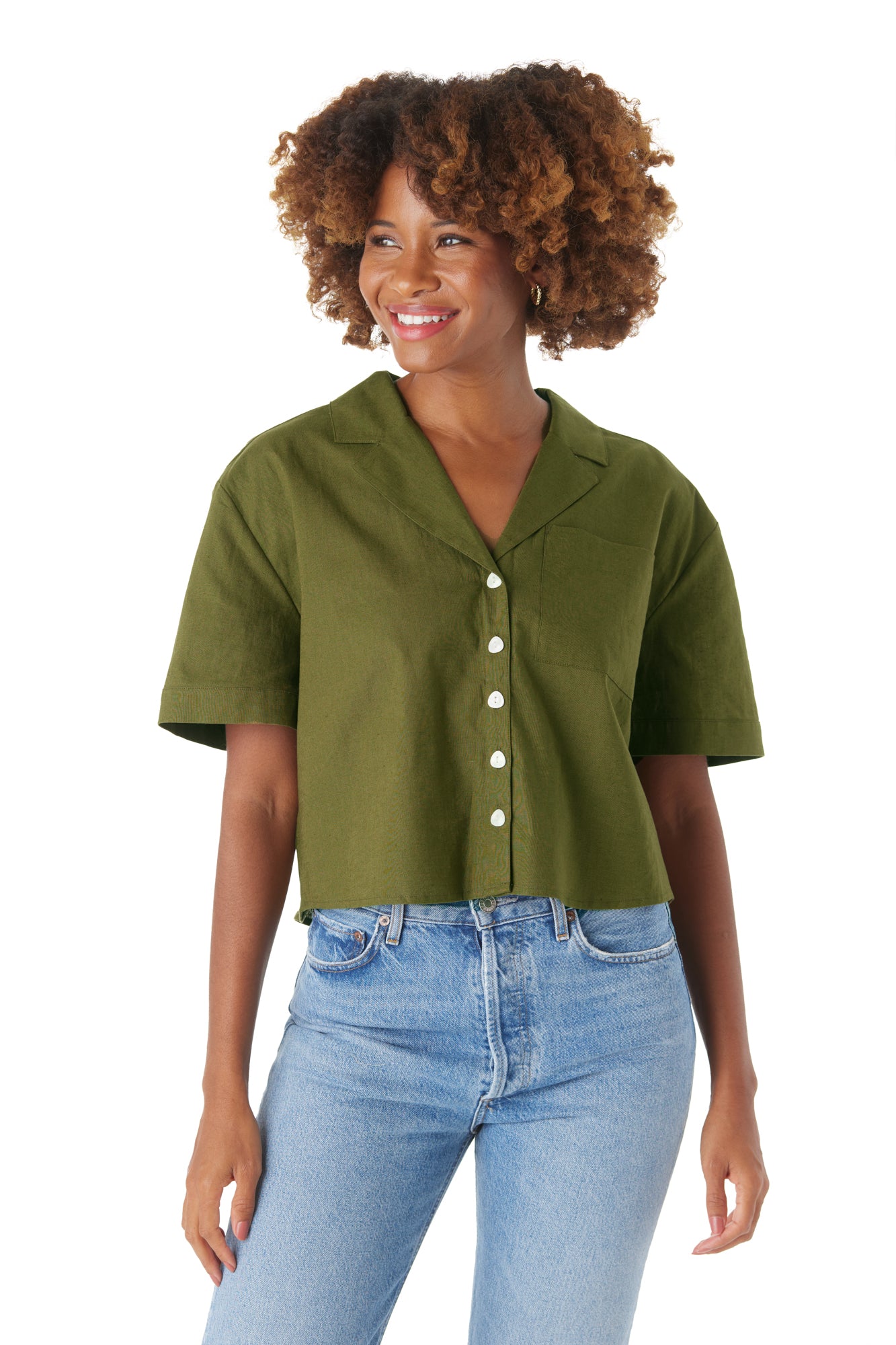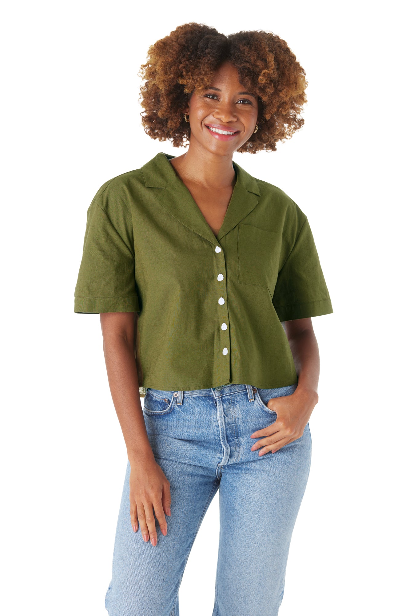 This slightly cropped camp shirt is a must-have for your closet! She has an oversized fit and pairs perfectly with our Ziggy Pants and Camden Shorts.