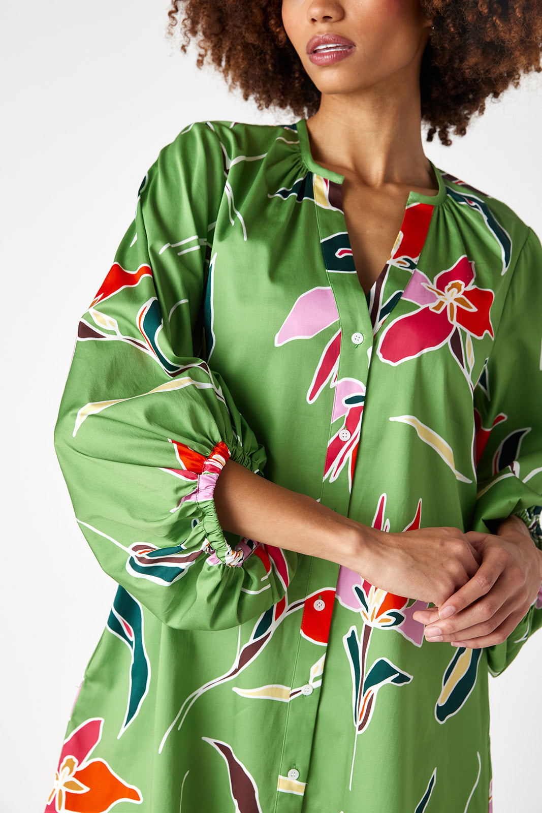 This easy-to-wear A-line silhouette is a closet must-have. With its button-front closure and flirty split V-neckline, the Liv Dress is effortlessly chic! The dropped shoulder and exaggerated ¾ length balloon sleeves add just the right amount of drama, ensuring you stand out in any crowd. And let's not forget the best part – she has pockets!