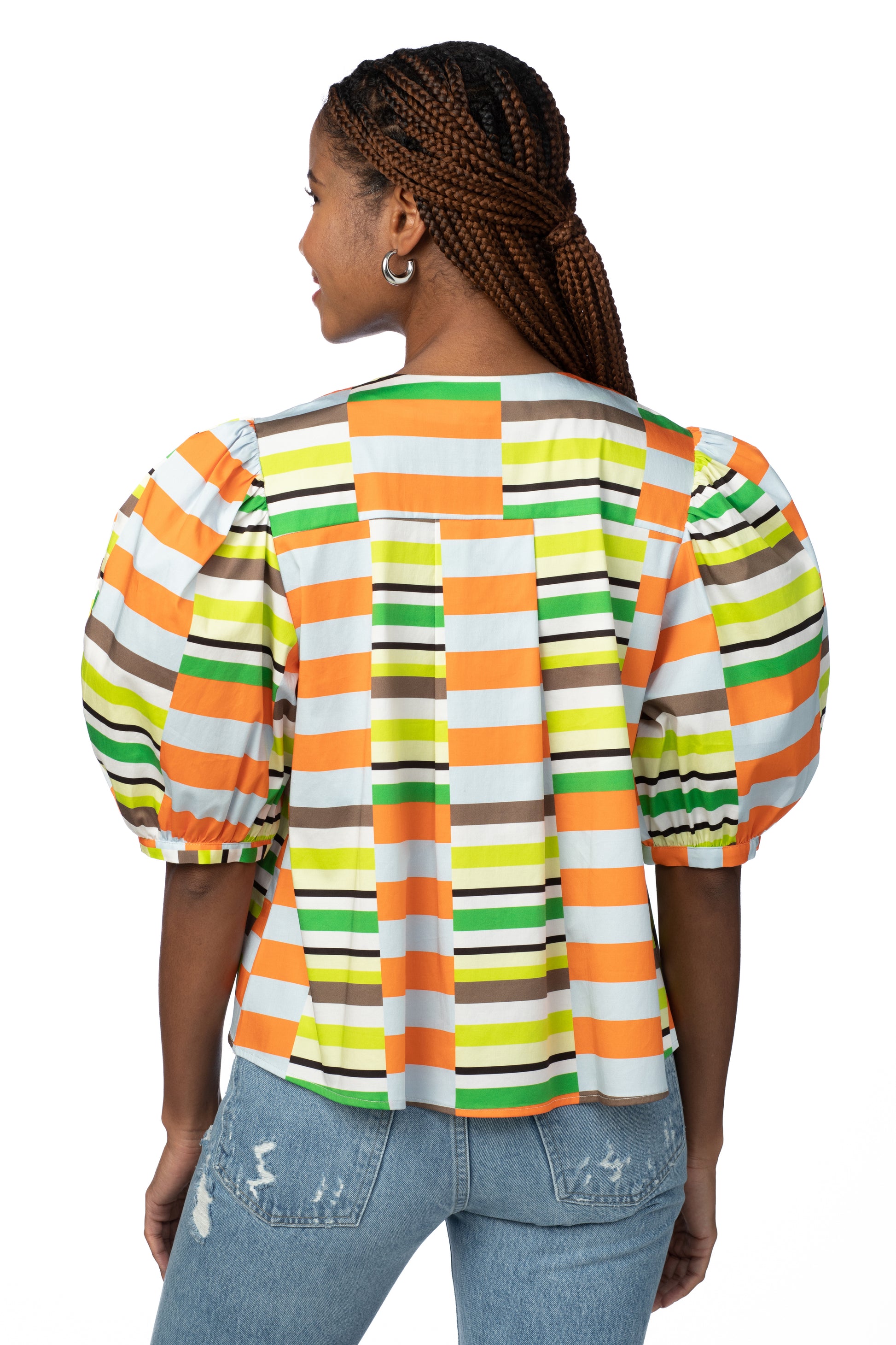 A classic V-neck with just the right amount of flair! We can’t get enough of her voluminous sleeves and detailed buttons.