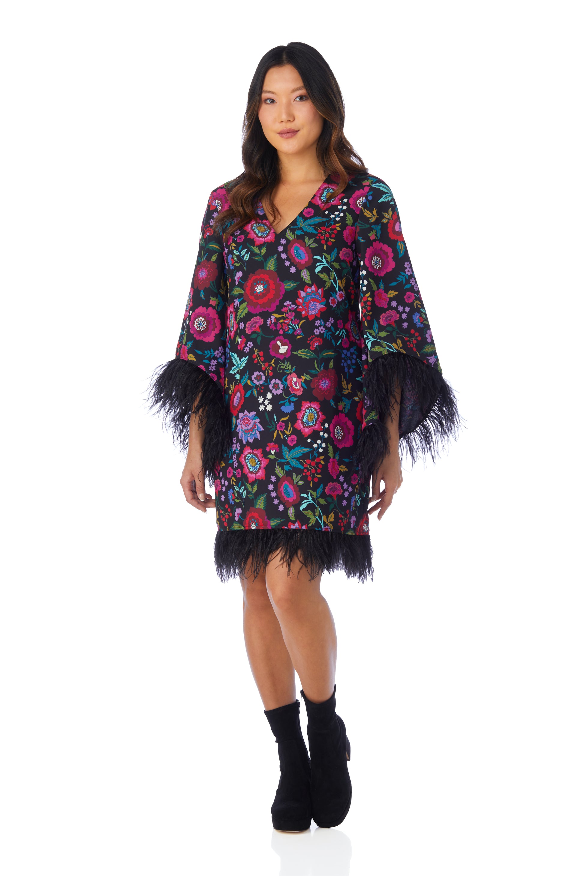 If you want to own the room, the Olivia Dress is for you. We can’t get enough of her feathered trim and mixed textures. Such a fun piece to add to your wardrobe!