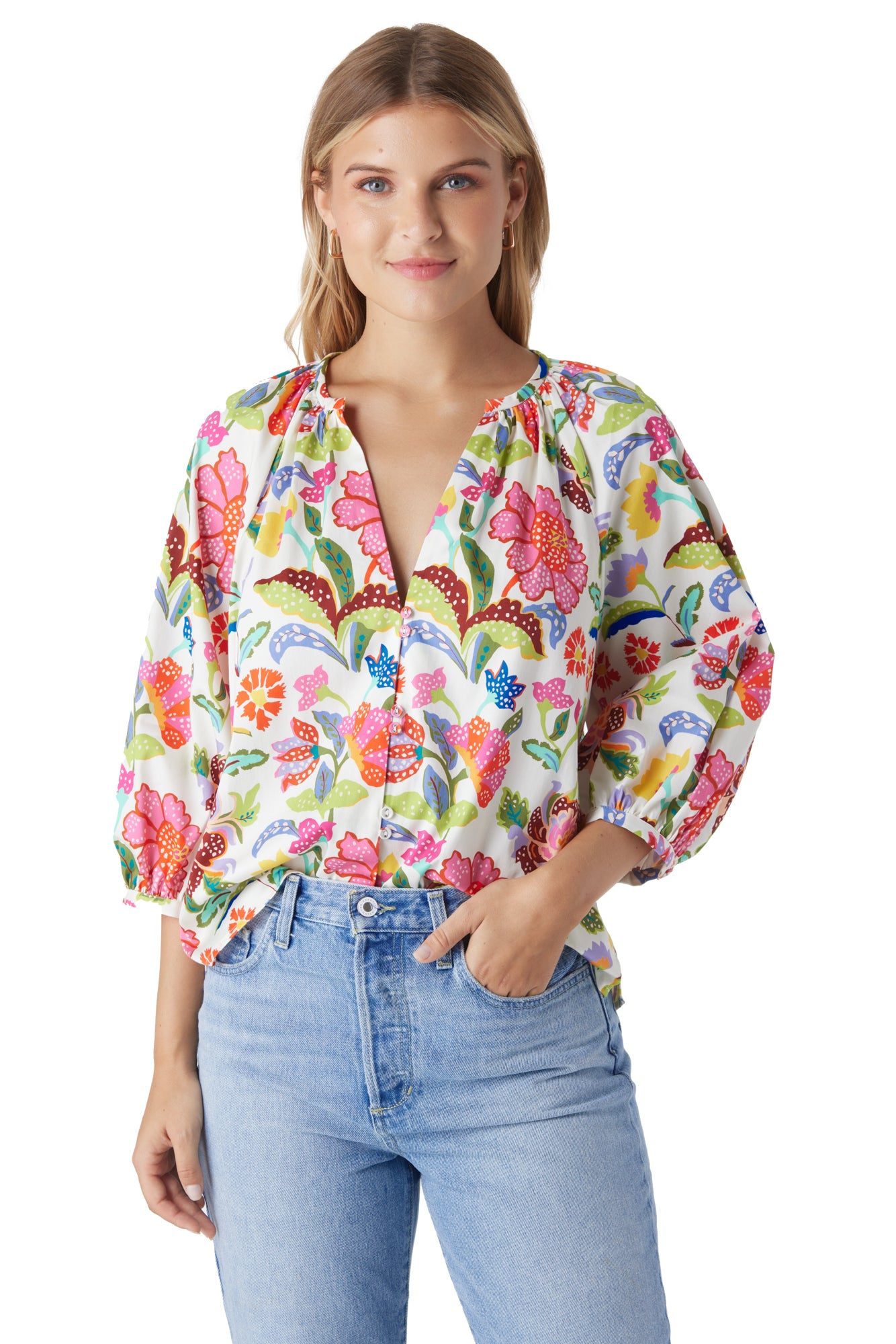 Searching for a top that embodies the essence of spring? Look no further than the Rives! She has a flowy silhouette with ¾-length balloon sleeves and is the perfect transitional piece to usher you stylishly into the brighter and warmer months ahead.