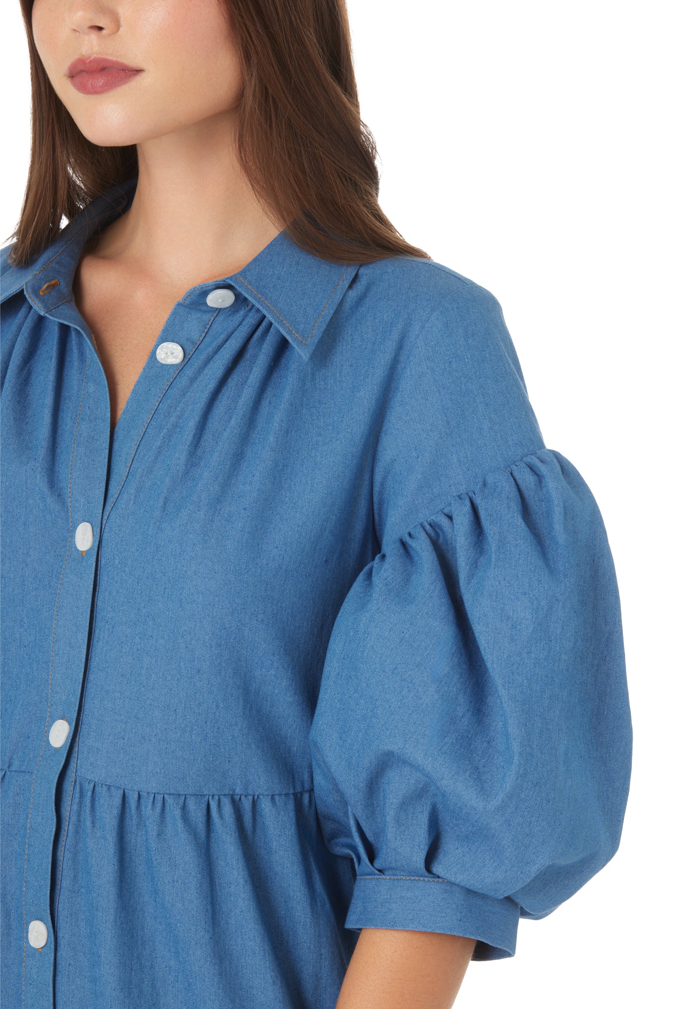 Step into spring with the must-have Rowen Dress! She’s midi length with a relaxed fit and features a tiered skirt, dropped puff sleeves, and pockets.