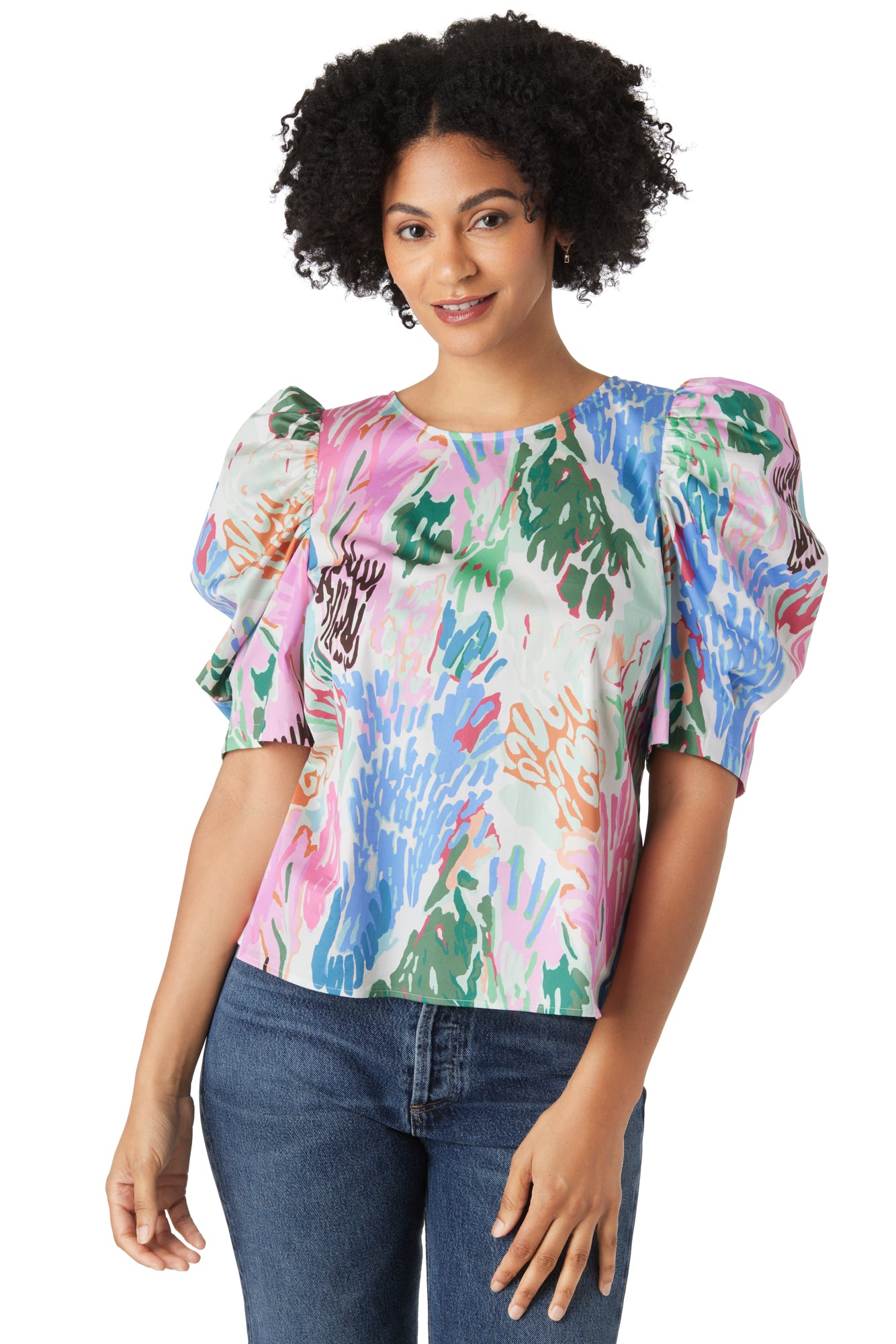 We can’t get enough of this versatile crew neck. The Rudy Top features pleated puff sleeves and a button-back closure. We love her sophisticated yet fun vibe!