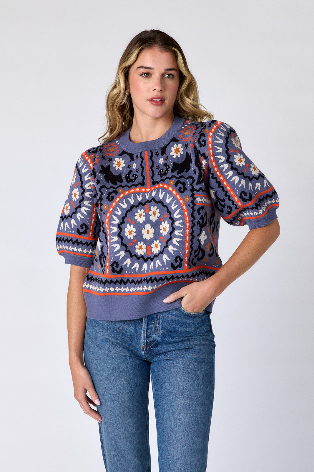 - Relaxed fit, above-the-hip length sweater