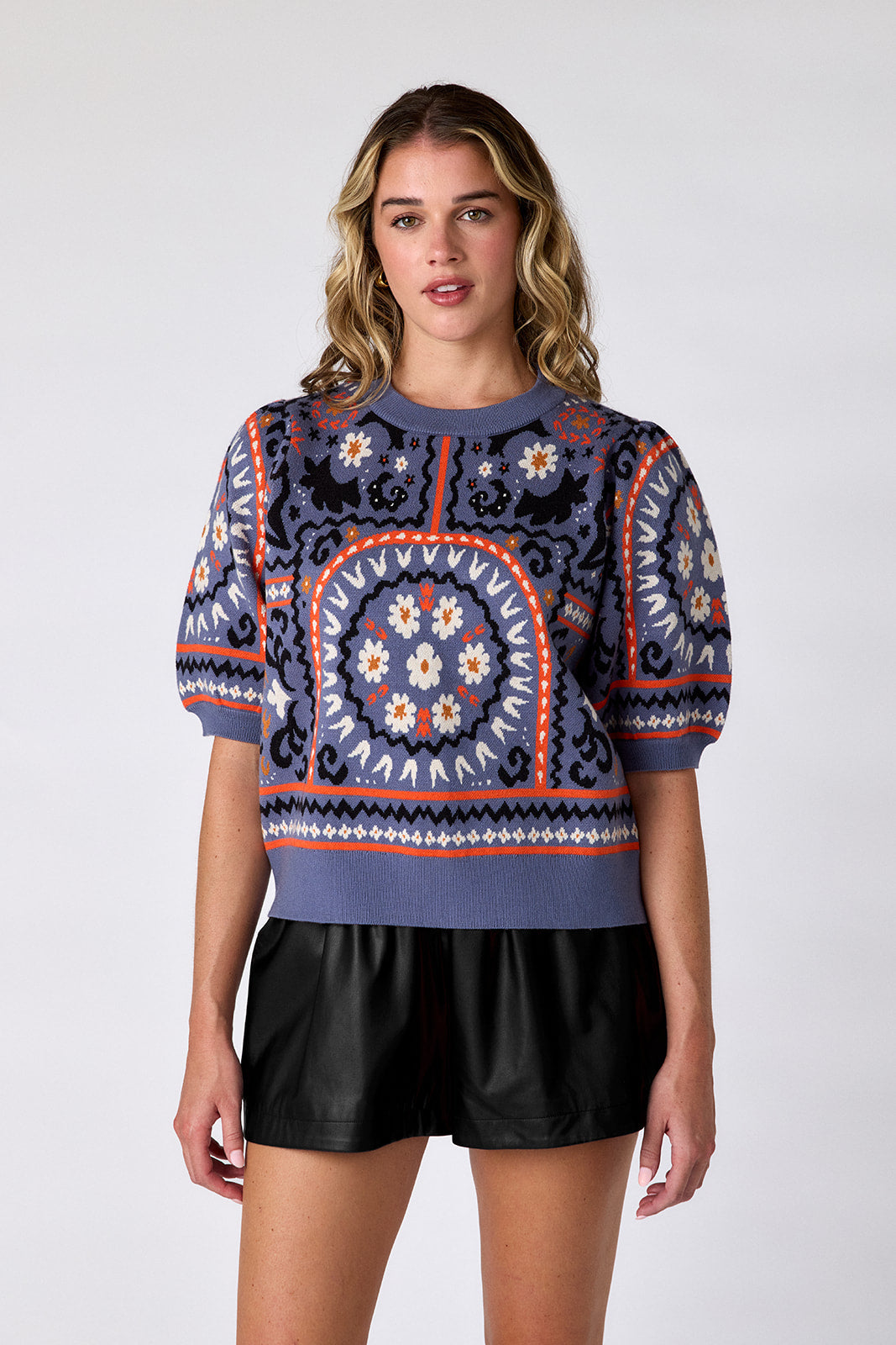 The Smith Sweater is your go-to layer for transitional weather. With its relaxed fit and short puff sleeves, it pairs effortlessly with our Cailan Shorts in Black Vegan Leather now and layers perfectly with denim and a jacket later.