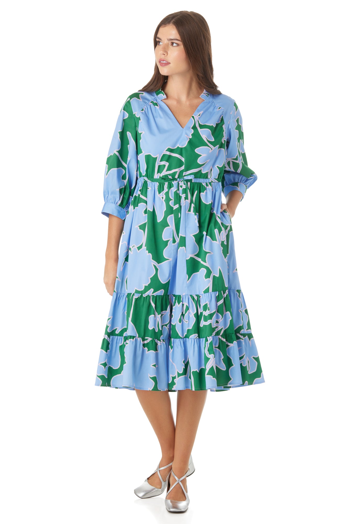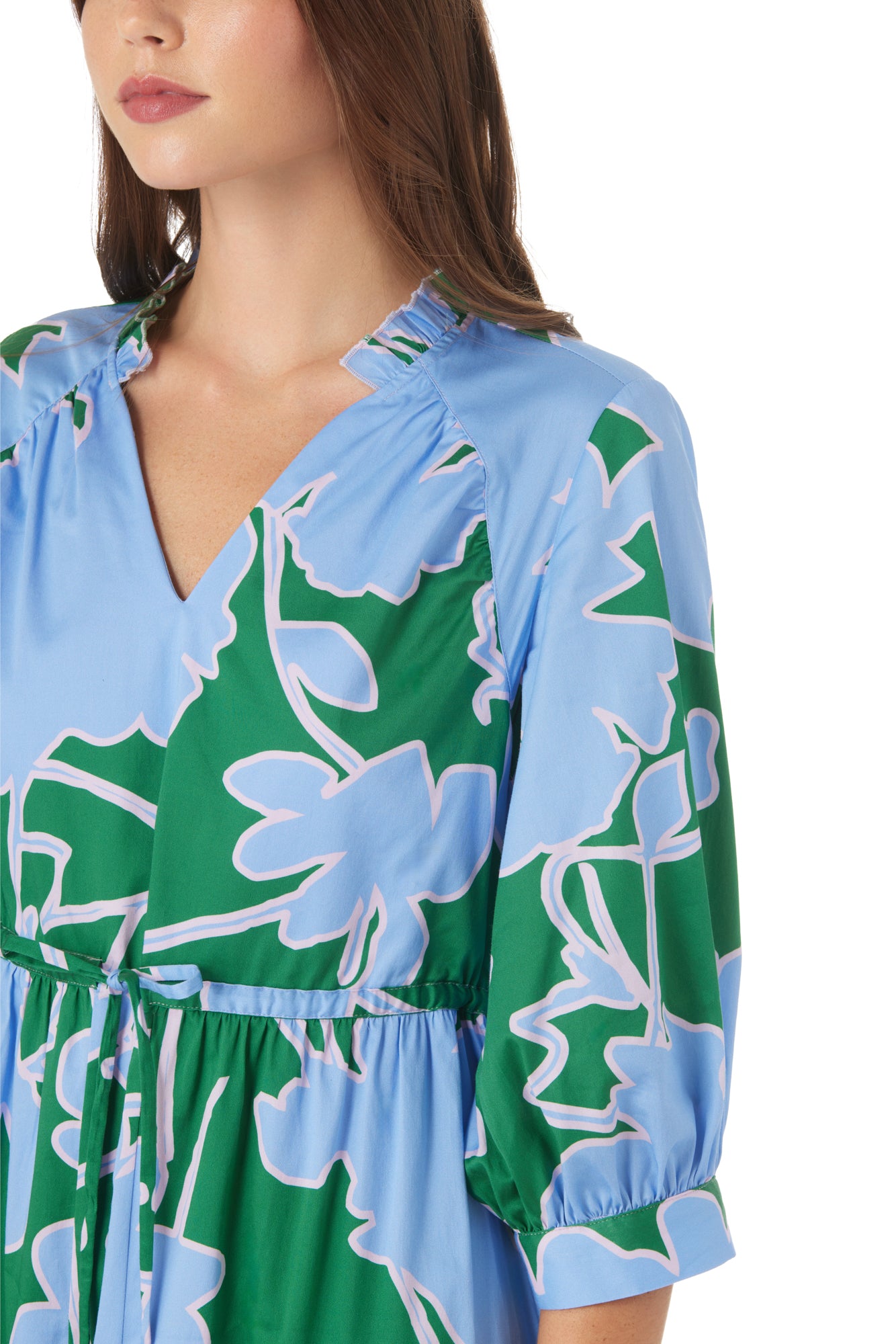 Elevate your spring wardrobe with the effortlessly chic Tallie Dress. This midi features a v-neckline with delicate ruffle collar, ¾-length balloon sleeves, and of course, pockets! Embrace a flattering silhouette with the functional drawcord at the waist.