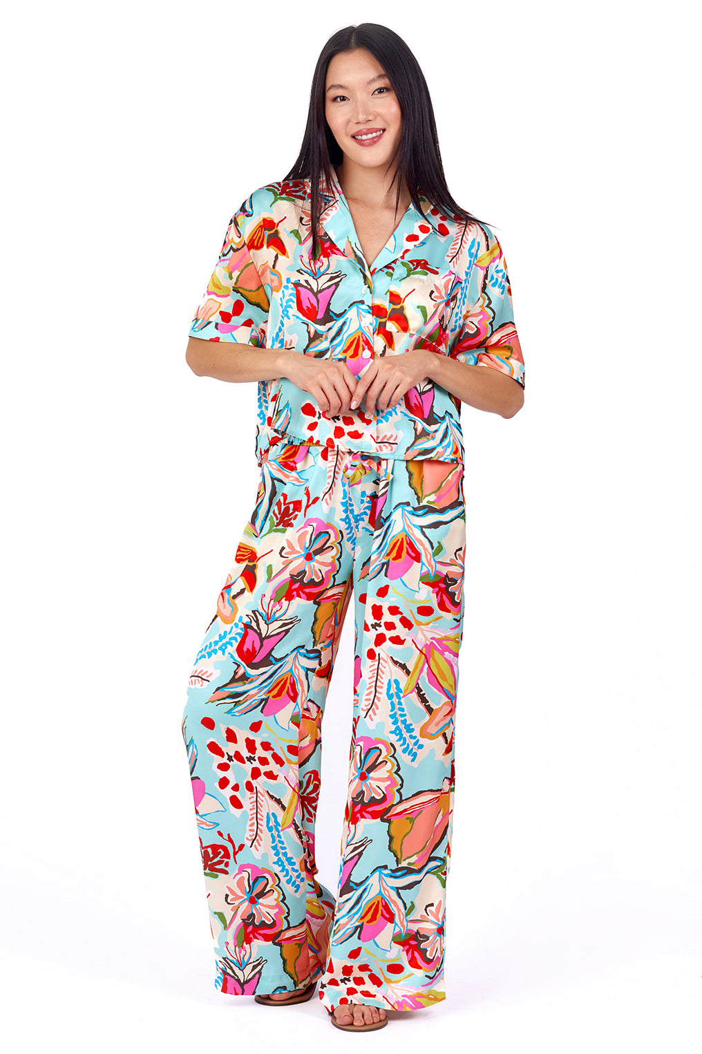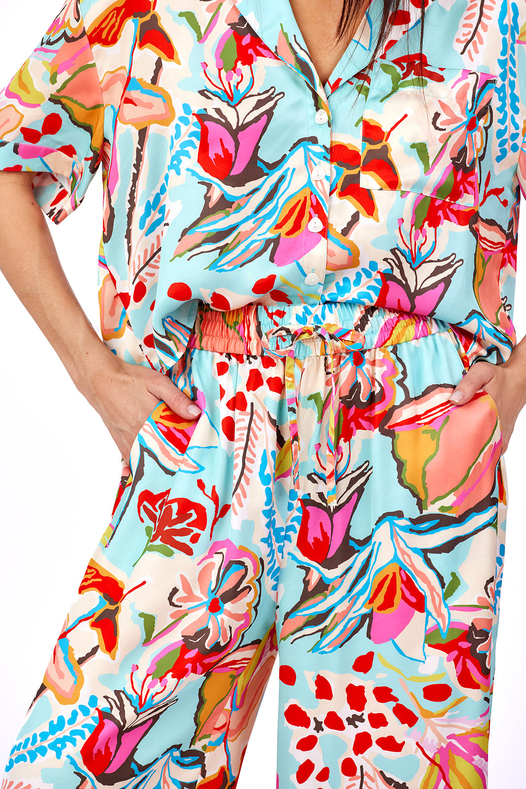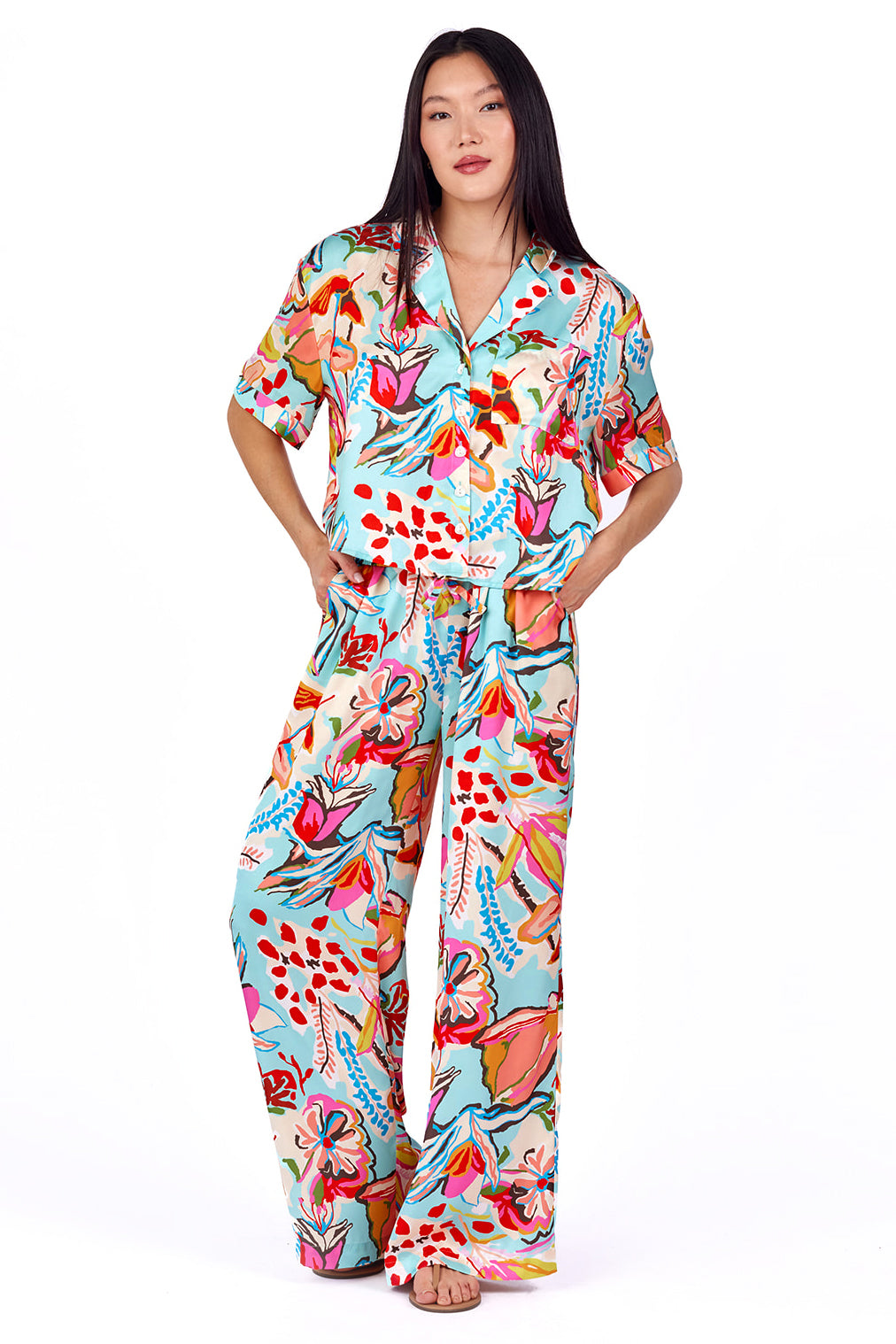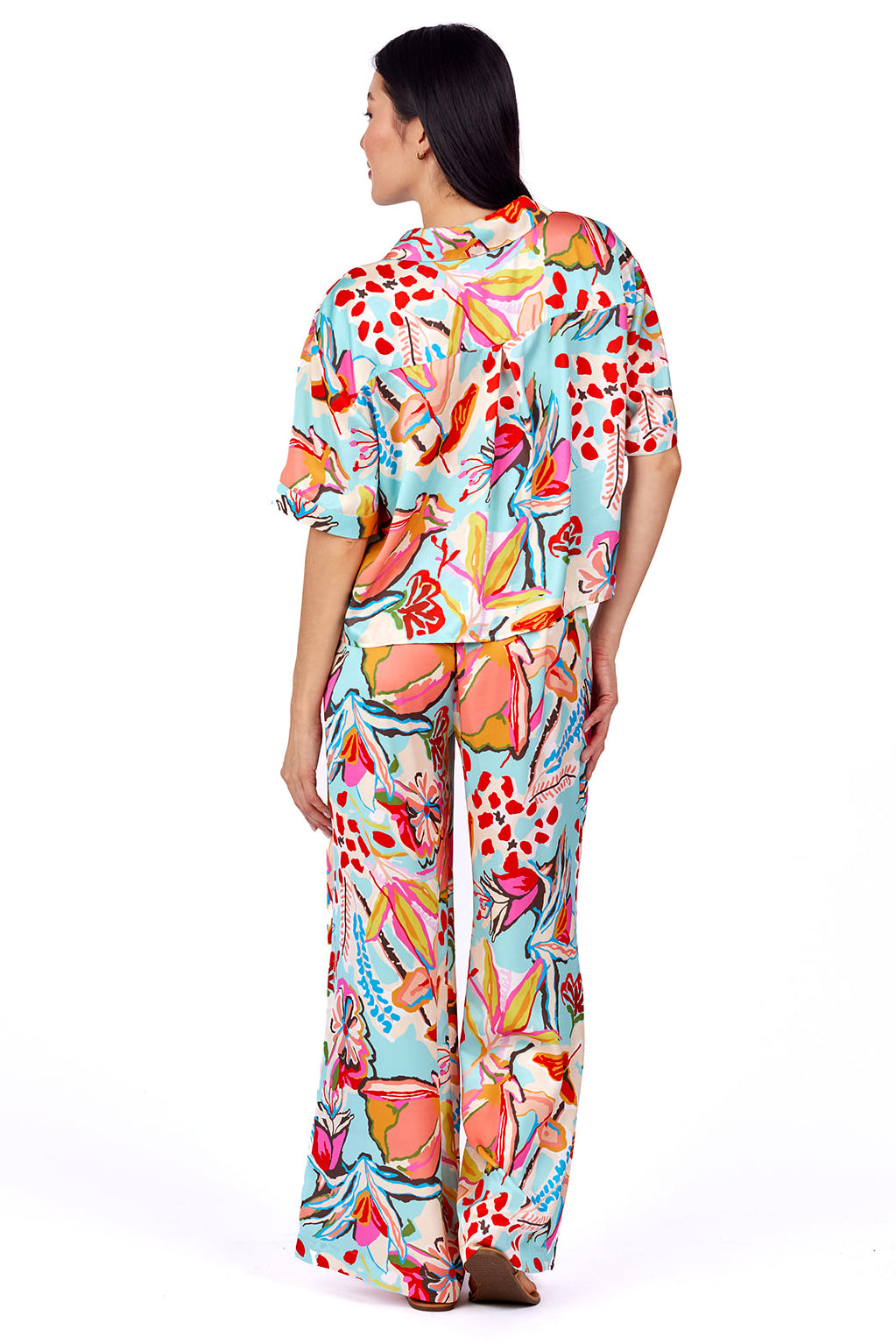Eleanor B. I love the pattern and had the top, so I went ahead and purchased the pants. They are true to size- maybe a little generously sized, and so fun to wear. They legs are super wide but it creates a fun to wear and cute profile. I like mine with straw wedges