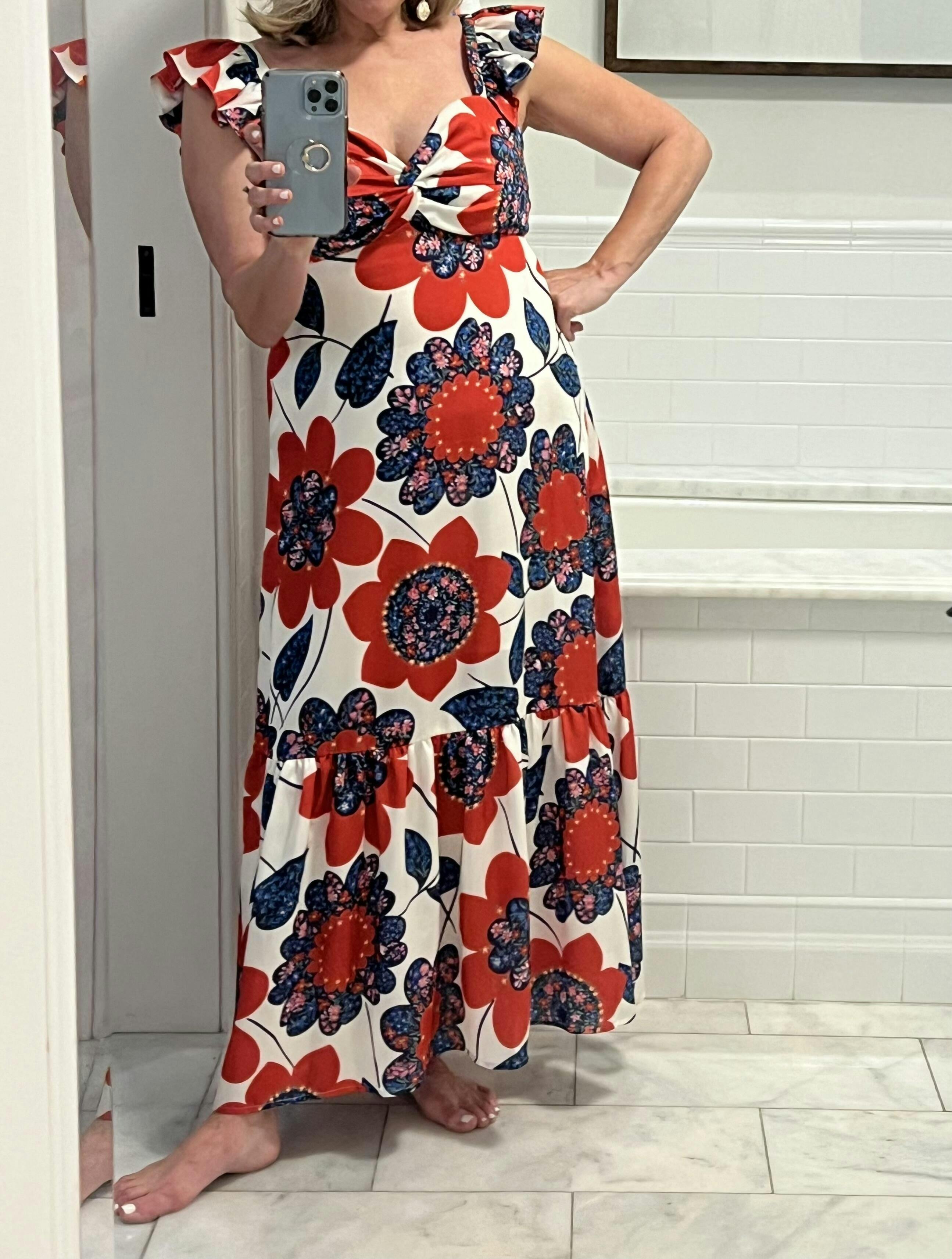 You’ll be the best dressed guest at any event this summer in our Zofia Dress! This A-line midi features a twisted sweetheart neckline, comfortable smocked back, delicate flutter straps, and a full tiered skirt.